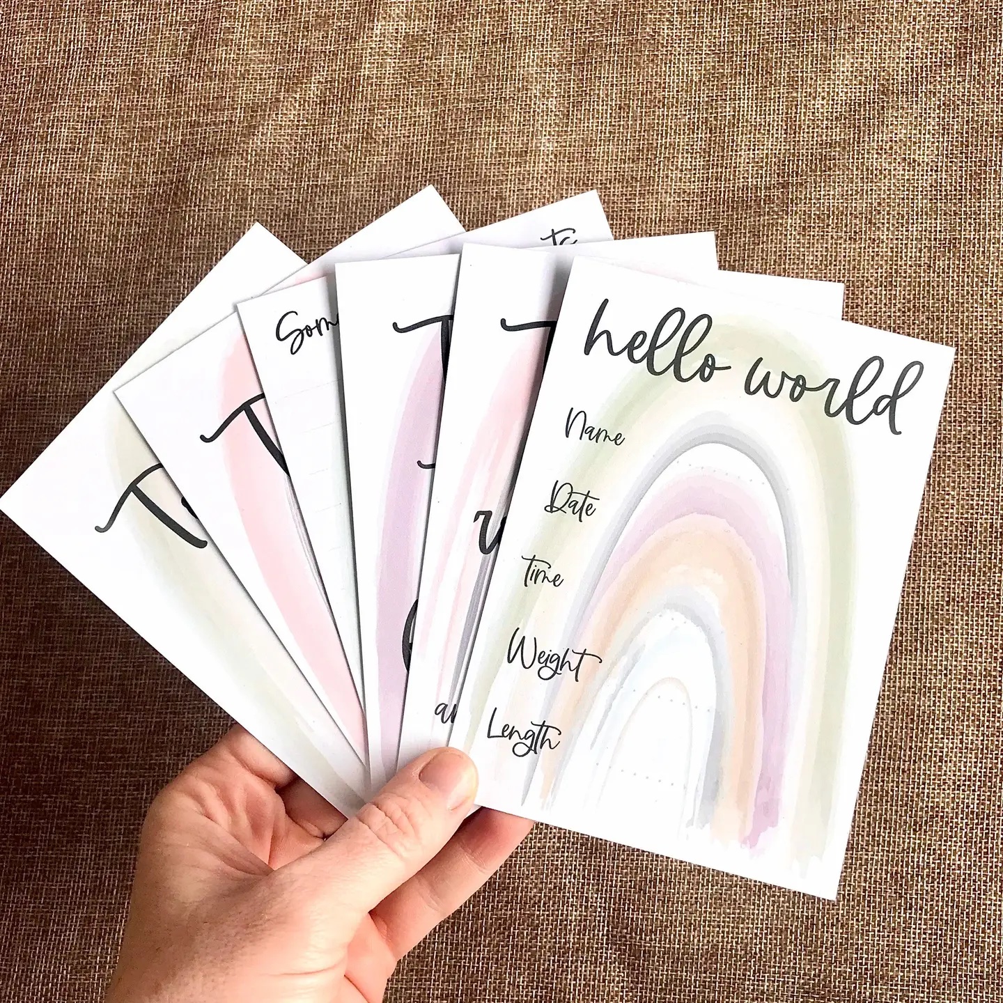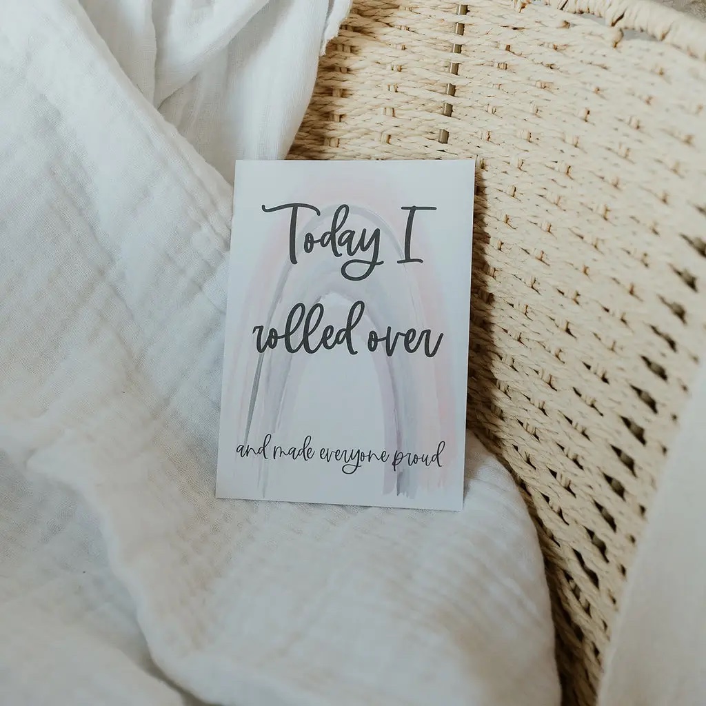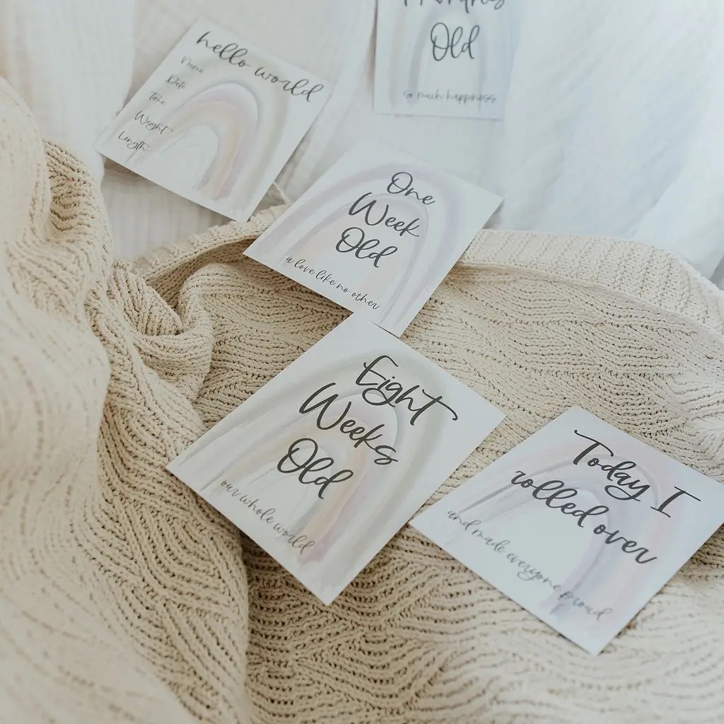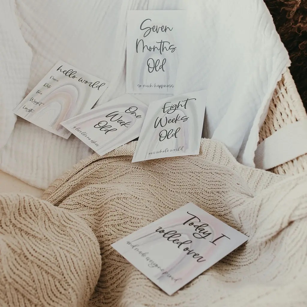 100% Recycled Gender Neutral Rainbow Baby Milestone Cards This gorgeous set of Milestone cards includes 32 milestone moments spread across 16 double sided cards.
