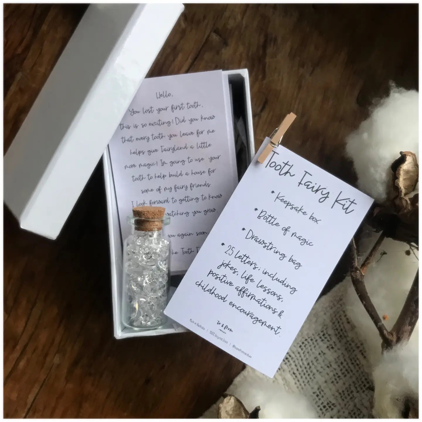 The ultimate kit to create a magical tooth fairy experience for your child.