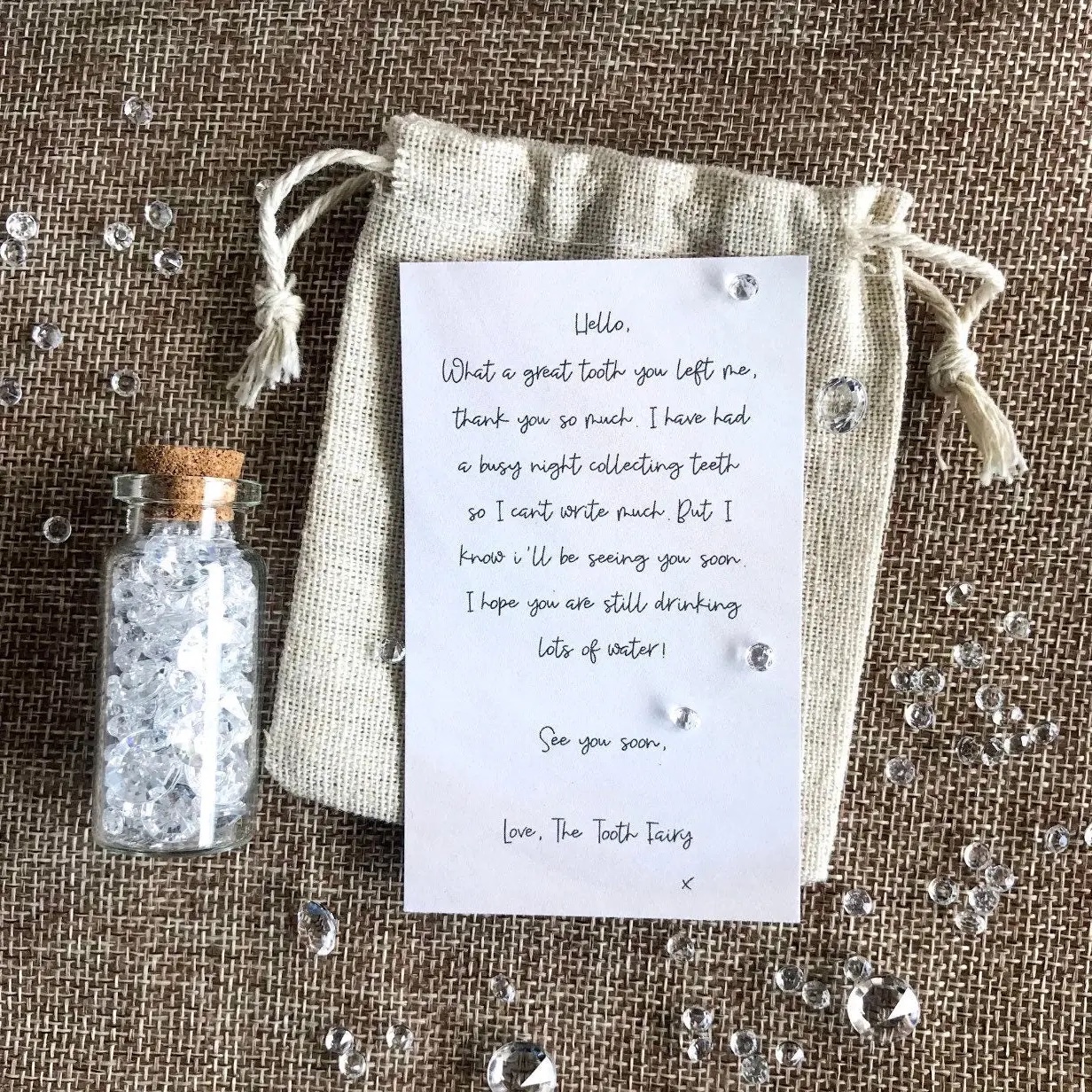 -Small drawstring bag- pop the tooth in and/or stash your note and gift!