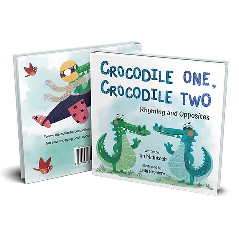 Hard cover 32 page, children’s picture book that teaches children about rhyming and opposites using colourful crocodiles as the central characters.