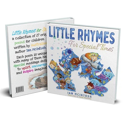 A beautifully illustrated hard cover 32 page, children’s picture book featuring 27 original rhyming poems for kids, written by Australian children’s book author, Ian McIntosh.