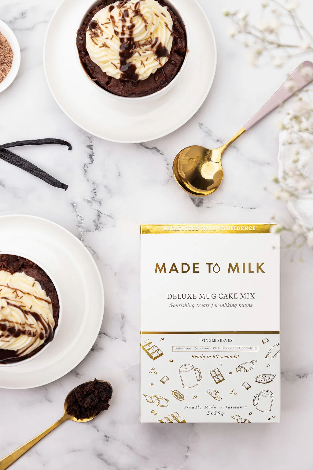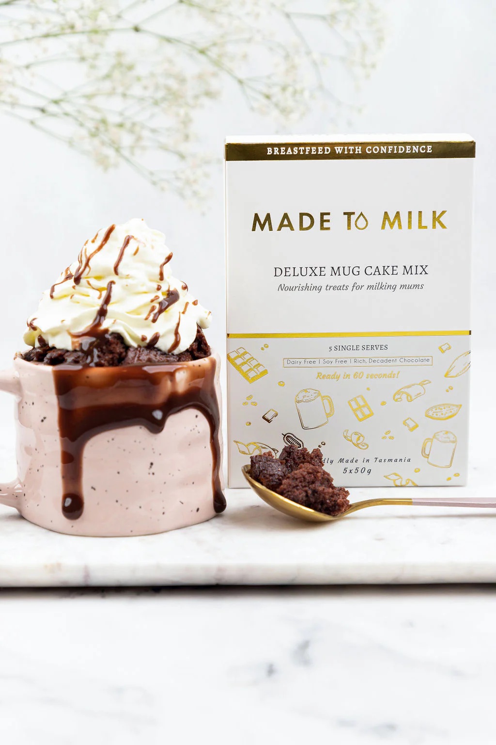 Our devilishly decadent new mug cake mix is sure to be a crowd favourite! 5 single serves individually packed into a money-saving box, this is the perfect treat for dessert-loving mamas to get that milk flowing.