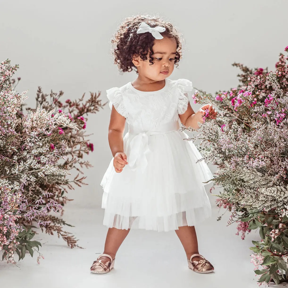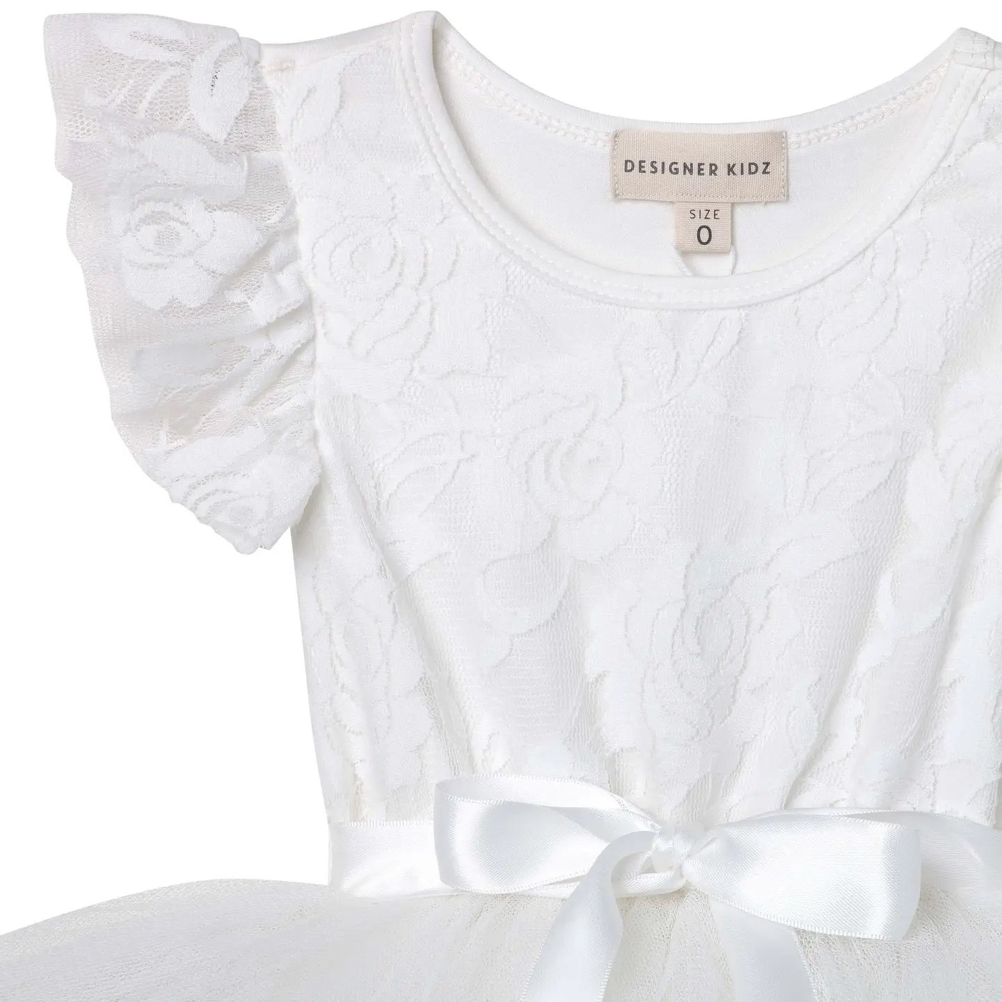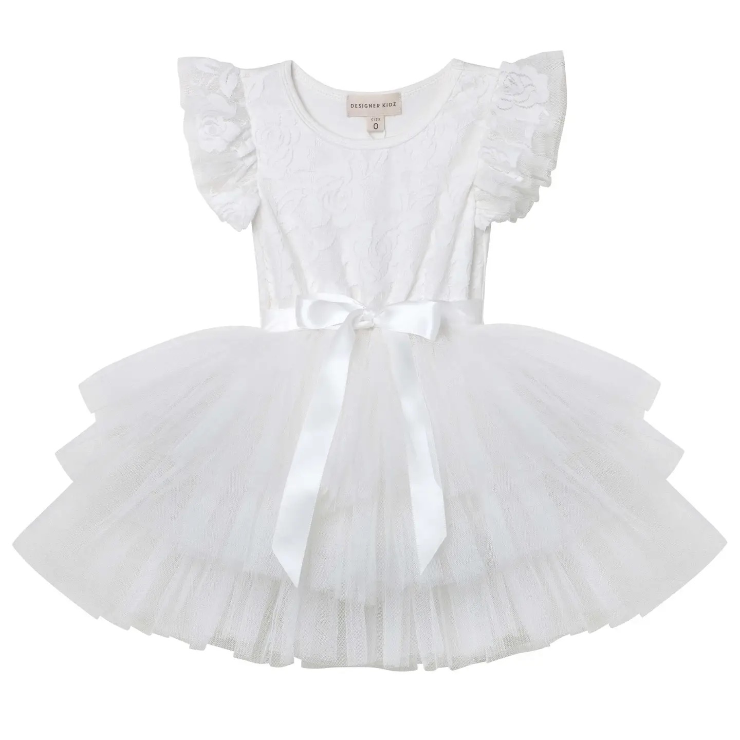 Make her next big day extra special with our My First Lace Tutu. Featuring soft floral lace bodice and frill sleeves, with matching soft layered tulle and matching bow. The perfect dress for your baby girl’s next wedding, christening, birthday or special occasion.