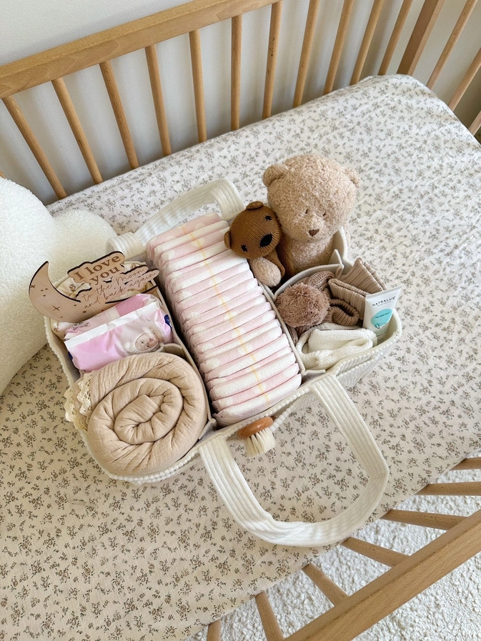 The Petite + Co Nappy Caddy Organiser is the perfect and most practical nursery item you’ll ever need. Designed in Australia with the most important and practical elements in mind, this versatile caddy has room for all your baby’s necessities in one place. Store nappies, wipes, bibs, creams, toys, swaddles, spare clothes, dummies, and more. Wake up in the night or need to change your little one? Keep everything in one convenient place, right at your fingertips. No more searching around for what you need. Effortlessly transition from room to room or take it on-the-go with ease. Made from high-quality felt fabric and featuring a corduroy outer, our Nappy Caddy combines functionality with style.