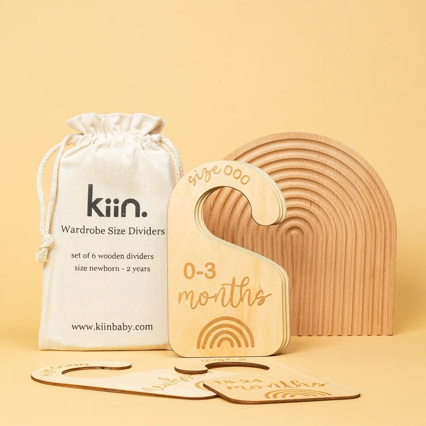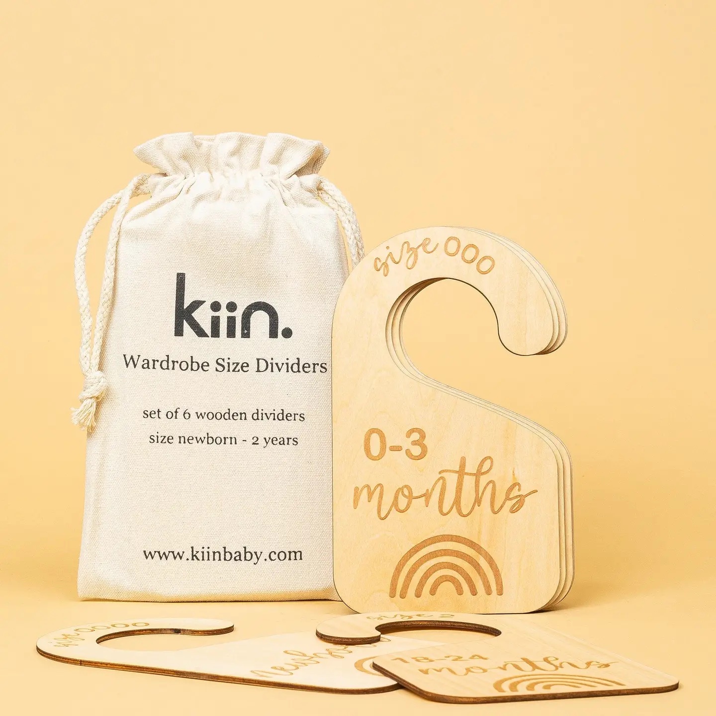 The Kiin Baby Wooden Wardrobe Size Dividers are the perfect accessory for organising babies wardrobe; making it easy for parents to sort clothing by size. Each set features six double-sided hanger dividers that will keep you little one’s wardrobe sorted from newborn right through to toddlerhood.