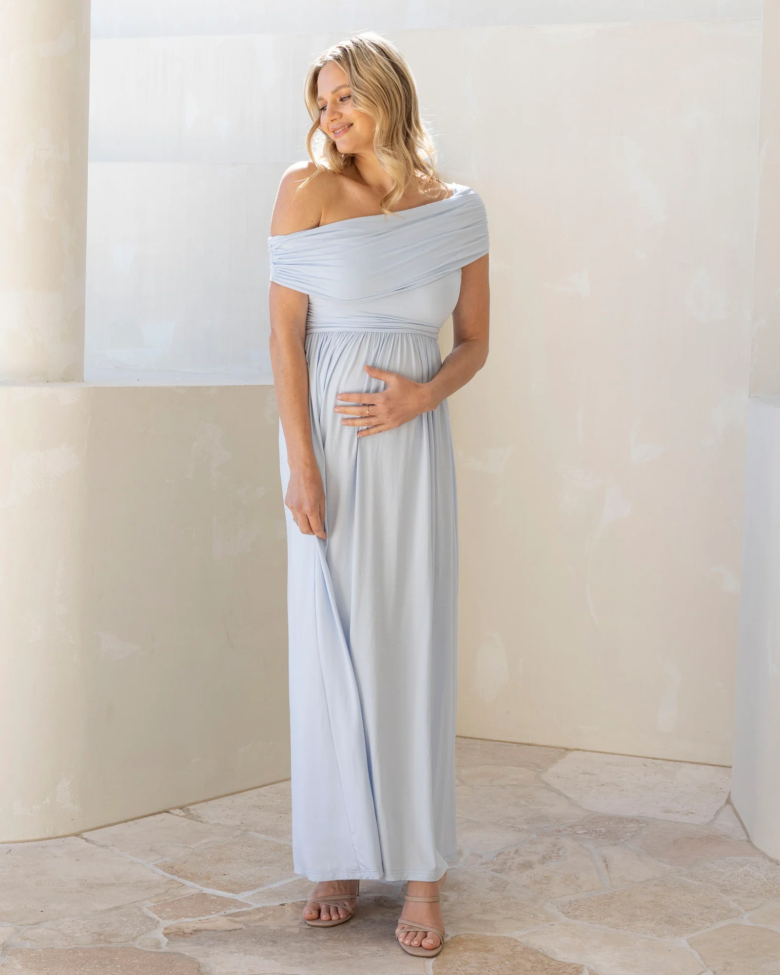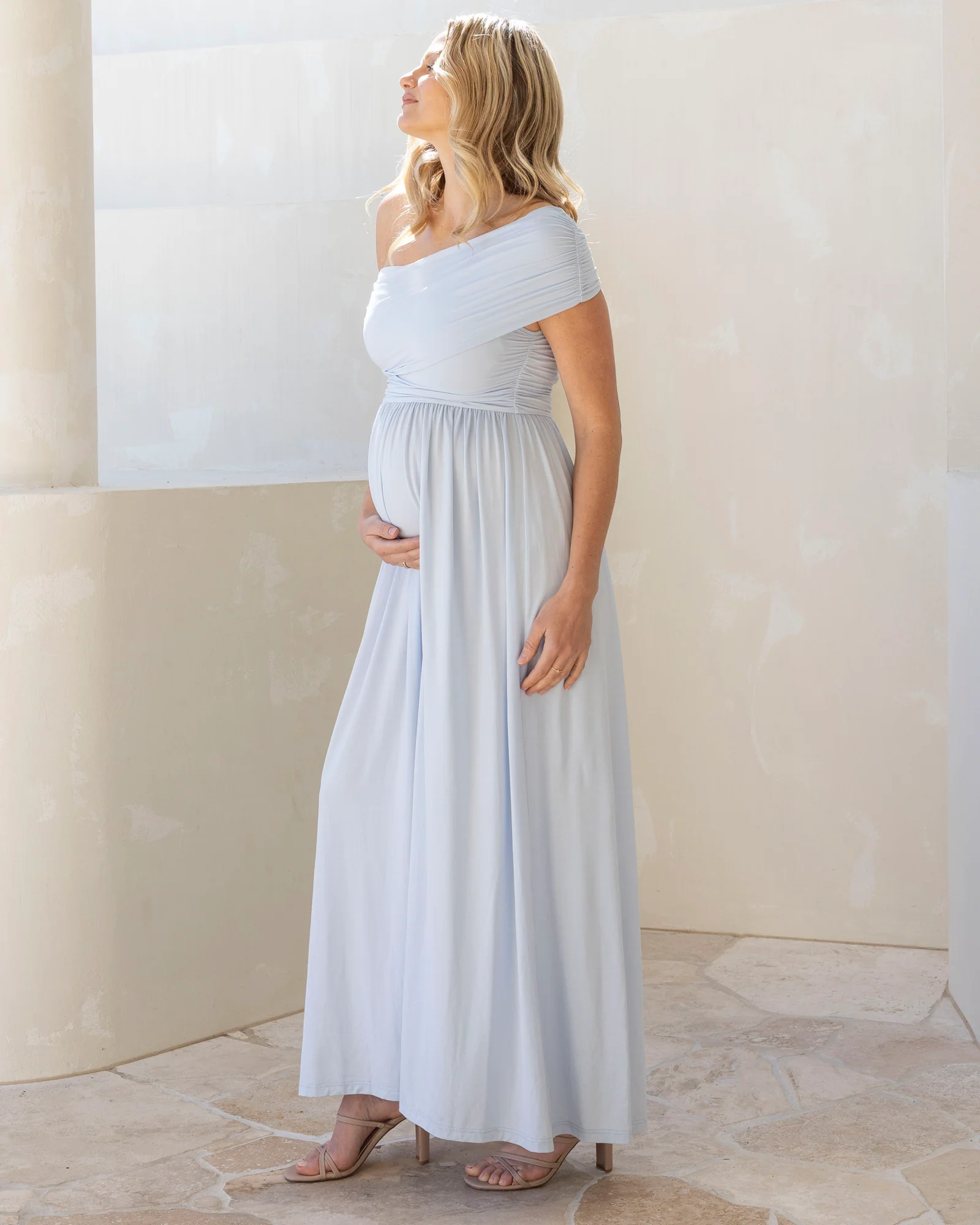 Ariana Maxi Maternity Moon Dress in Baby Blue