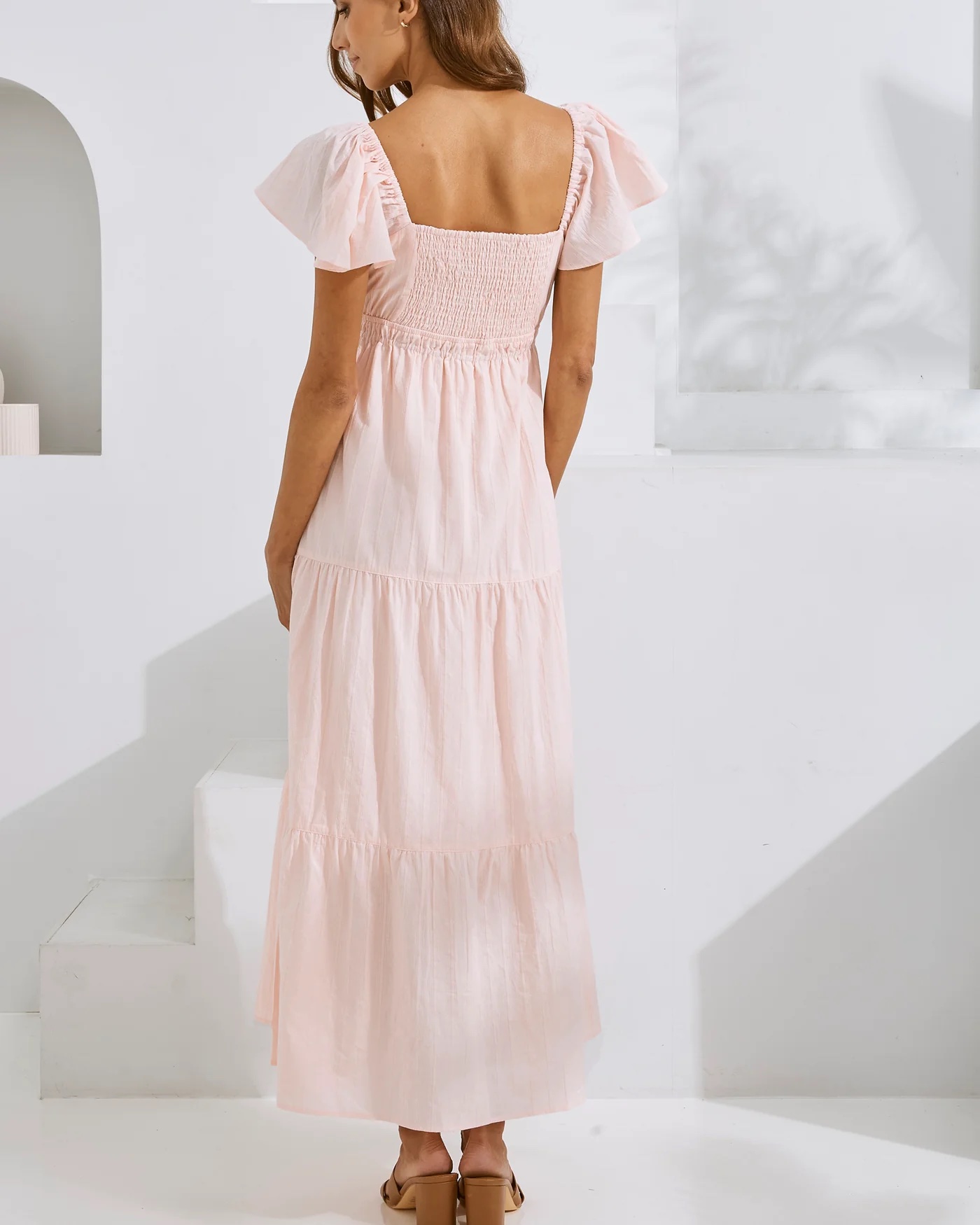 This elegant maternity pink dress is perfect for a baby shower or any summer occasion. Designed with comfort and style in mind, the Serena dress features a flattering empire waist and flowy skirt that accentuates your growing belly while providing effortless movement. The soft, textured fabric ensures a light and airy feel, making it an ideal choice for a relaxed outdoor baby shower or casual gathering.