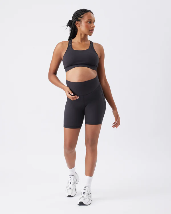 Designed to fit throughout pregnancy and beyond, our Tempo Bike Short is cut from a soft moisture wicking four way stretch knit which has anti pilling and compression qualities. Features side seam and centre back (inside waistband) pockets, and high tummy coverage. Looks great paired with our matching Tempo Crop Top.