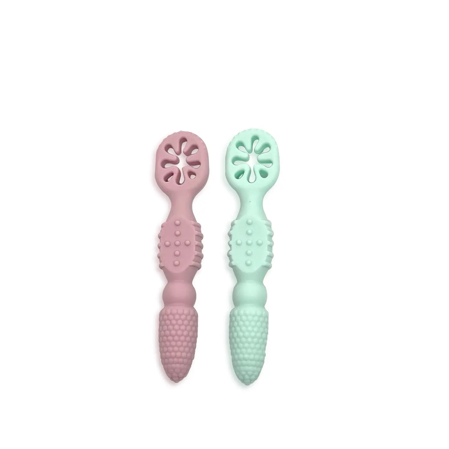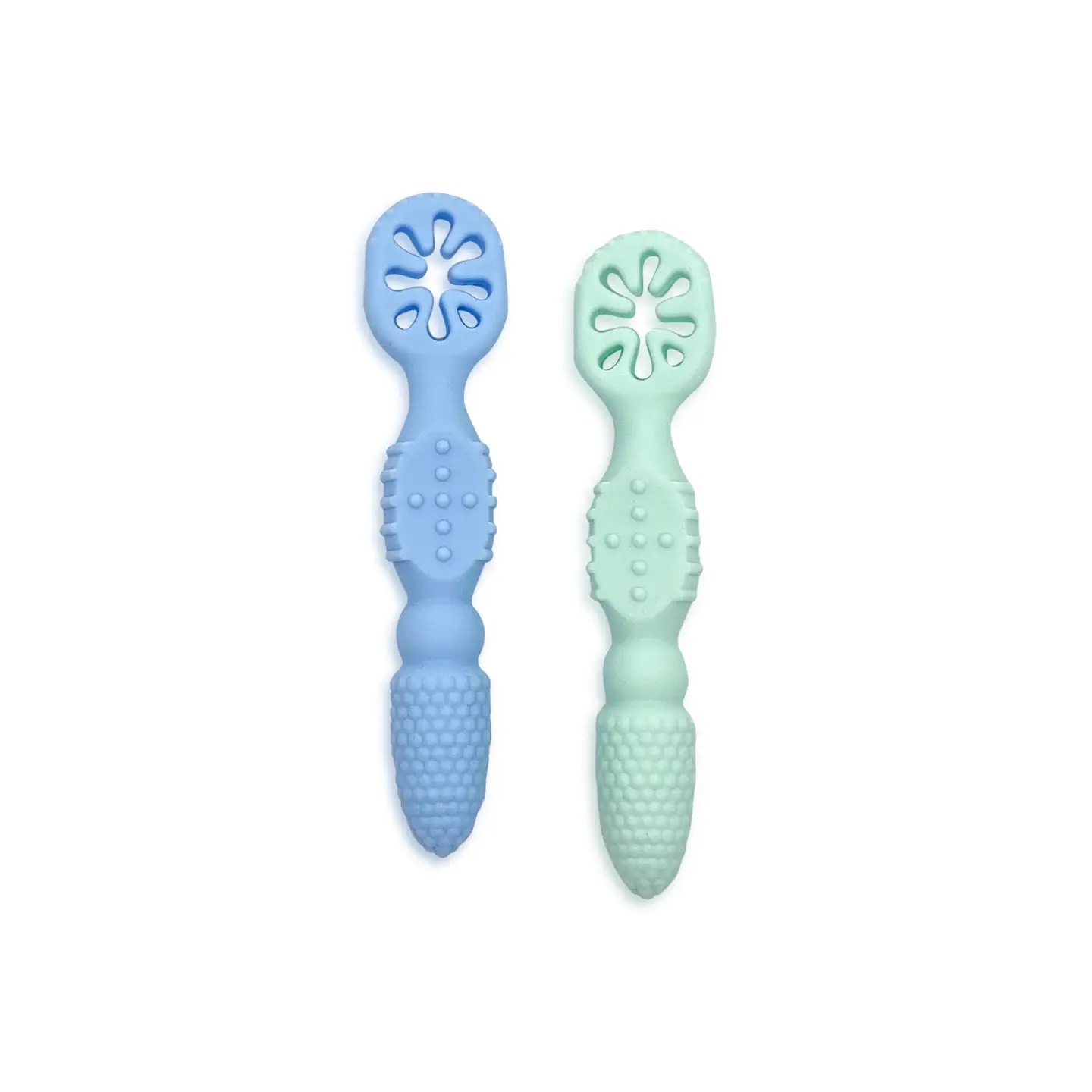 They are the perfect size and shape for little hands, featuring a unique food channel that grabs food however baby dips it, textures handle to avoid slippage even when the dipper is covered in puree and a firm textured end especially designed for teething.