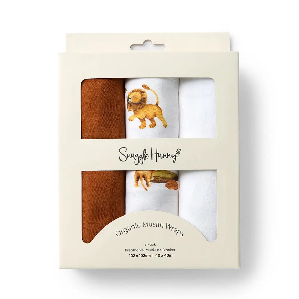 Our 3 pack large organic muslin wraps measure 102cm x 102cm and are lightweight and breathable. They are perfect for use as a swaddle, burp cloth, feeding cloth, light blanket, changing mat, and cleaning cloth. They make a fantastic gift for new and expecting parents. Our muslin wraps are made with 100% GOTS Certified Organic Cotton CU 1182228.