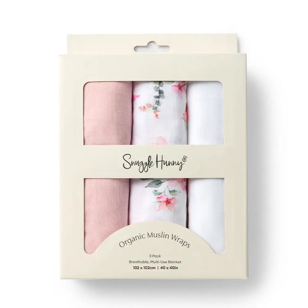 Our 3 pack large organic muslin wraps measure 102cm x 102cm and are lightweight and breathable. They are perfect for use as a swaddle, burp cloth, feeding cloth, light blanket, changing mat, and cleaning cloth. They make a fantastic gift for new and expecting parents. Our muslin wraps are made with 100% GOTS Certified Organic Cotton CU 1182228.