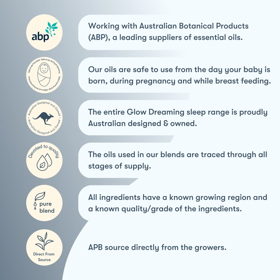 Glow Defence – The Glow Defence blend is formulated to support the immune system. Copaiba balsam and turmeric are well-researched for their anti-inflammatory and immune-boosting effects, making them appropriate for use during pregnancy and breastfeeding. Lavender and ginger add to the immune-supportive and calming properties of this blend, ensuring safety and wellness for newborns and mothers
