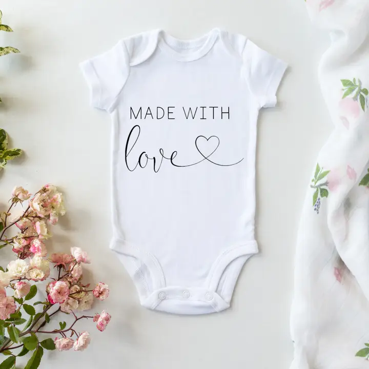 Our cute handmade baby onesie’s are the perfect baby announcement or baby shower gift. Our onsie’s are 100% buttery soft polyester and come with metal poppers to close. We use high quality vinyl to create each individual design shown. The printis long lasting and is amazing quality. Please see product care information for details on how to care for your item. Product care information: Please wash on a low temperature (30 degrees), inside out with no fabric conditioner. Do NOT tumble dry. When ironing, do not iron directly on top of the print. Ideally iron inside out to prevent damage to the design.