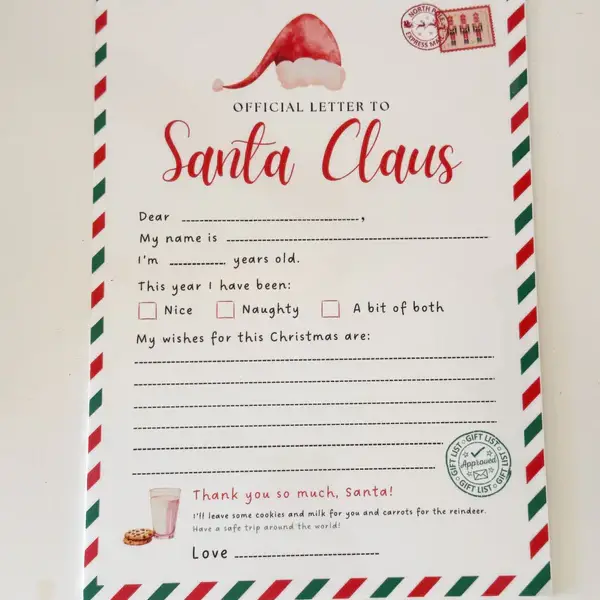 Santa Letter – Christmas Keepsake for Kids Make the countdown to Christmas extra magical with our Santa Letter – a fun and festive tradition your little ones will love year after year! Perfect for creating memorable holiday moments and capturing adorable photos to share with friends and family. Product Features: * Size: 21cm (W) x 29cm (H) * Material: 3mm white acrylic * Reusable each year – simply wipe and update with a whiteboard marker only (marker not included) * Ideal for Christmas Eve boxes, family photo props, or festive décor Please Note: Each piece is uniquely crafted from natural wood, meaning variations in grain, colour, and finish are part of its natural charm. No two boards are exactly alike. Important Care Info: * Use only whiteboard markers – chalk or permanent markers may damage the surface * Indoor use only – not intended as a toy * Wipe clean with a dry or slightly damp cloth after use By placing your order, you understand that colours and wood grain may vary slightly from your screen to the actual product. Handmade items may differ ever so slightly from product images.