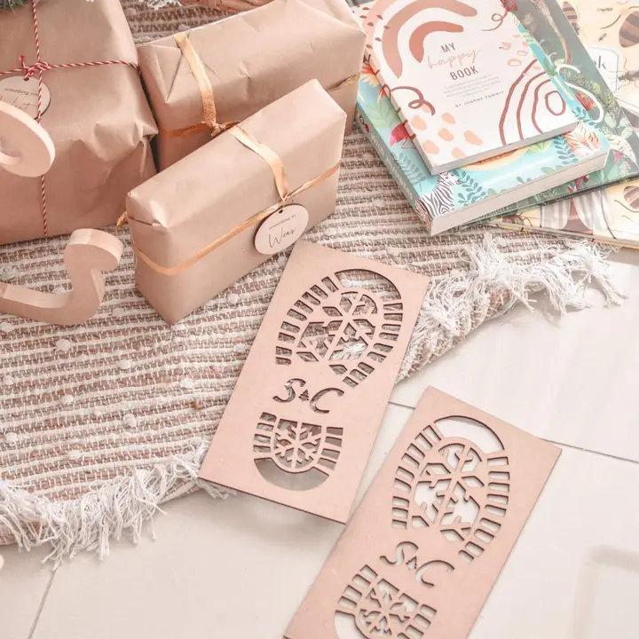 Such a fun way to make every kids Christmas more memorable.  Add to your little ones memories, leave a trail of footprints and let their imagination run wild! These Santa Claus Boot Stencils come in life size prints.  To use – simply lay the stencil flat on the ground and sprinkle your choice of powdered substance, whether it be flour or glitter to imitate magical footprints or snow from Santa’s boots, the choice is yours! Stencils are made from 3mm natural wood which enables the stencil to remain strong whilst using! This set includes 1 x set of life size boots (no powdered substances). By placing your order, you understand that colors and wood grain vary from monitor/screen to in-person. You acknowledge that handmade products may differ ever so slightly from the photos on the website.
